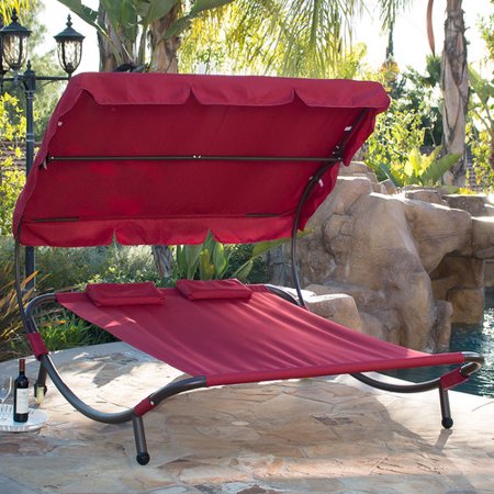 Popular outdoor double chaise lounge for any weather, and titled: Abba patio outdoor double chaise lounge with adjustable canopy and headrest pillow, patio wheeled hammock bed for sun room, garden, courtyard, poolside, cream, 6.6'l x 6.5'w. Your little ones will be ready for outdoor fun and relaxation with the double chaise lounge by kidkraft. Both sides can be adjusted independently of one another. Sie besitzt nur auf einer seite eine erhöhte lehne und erinnert an relaxliegen.